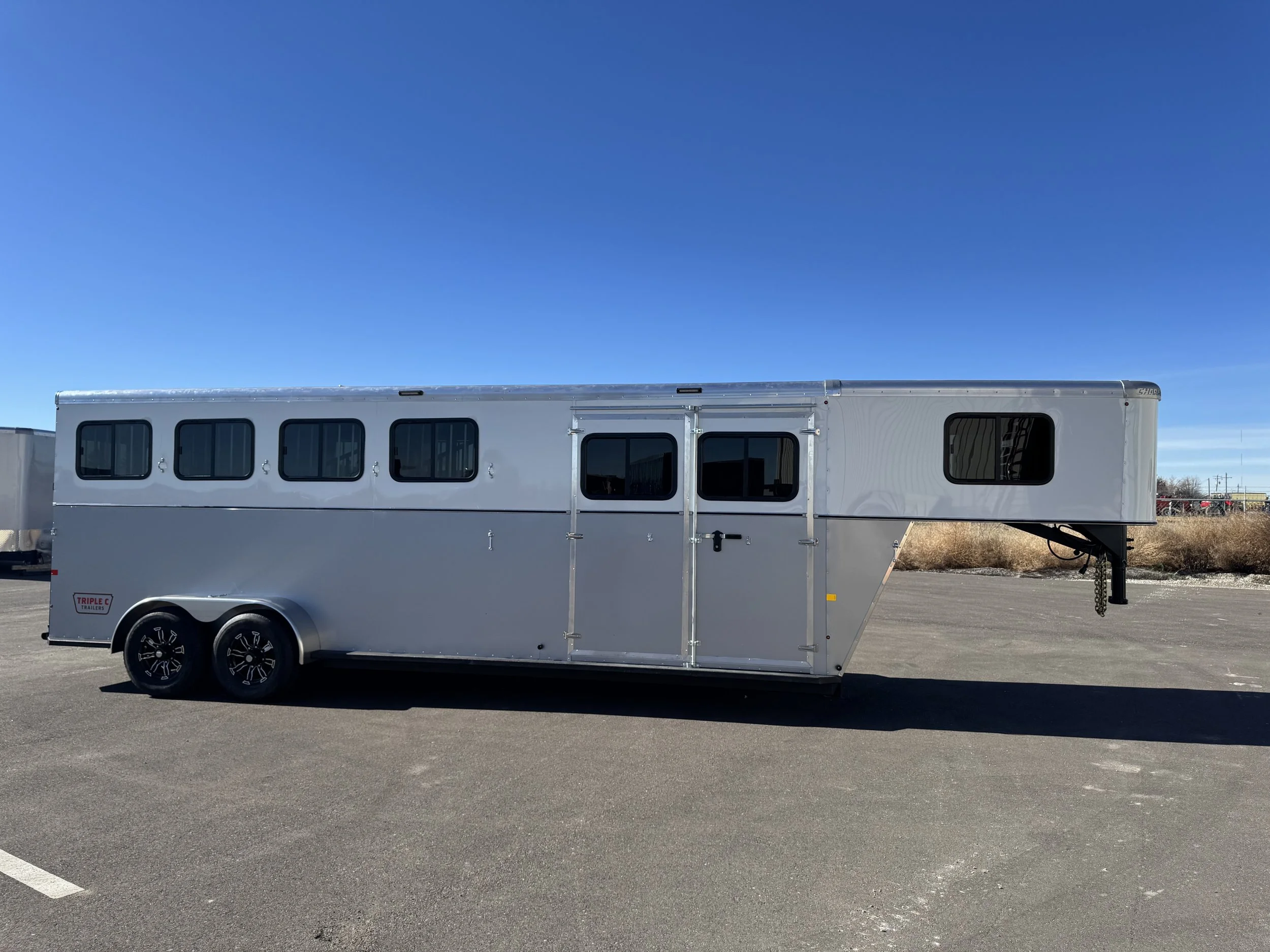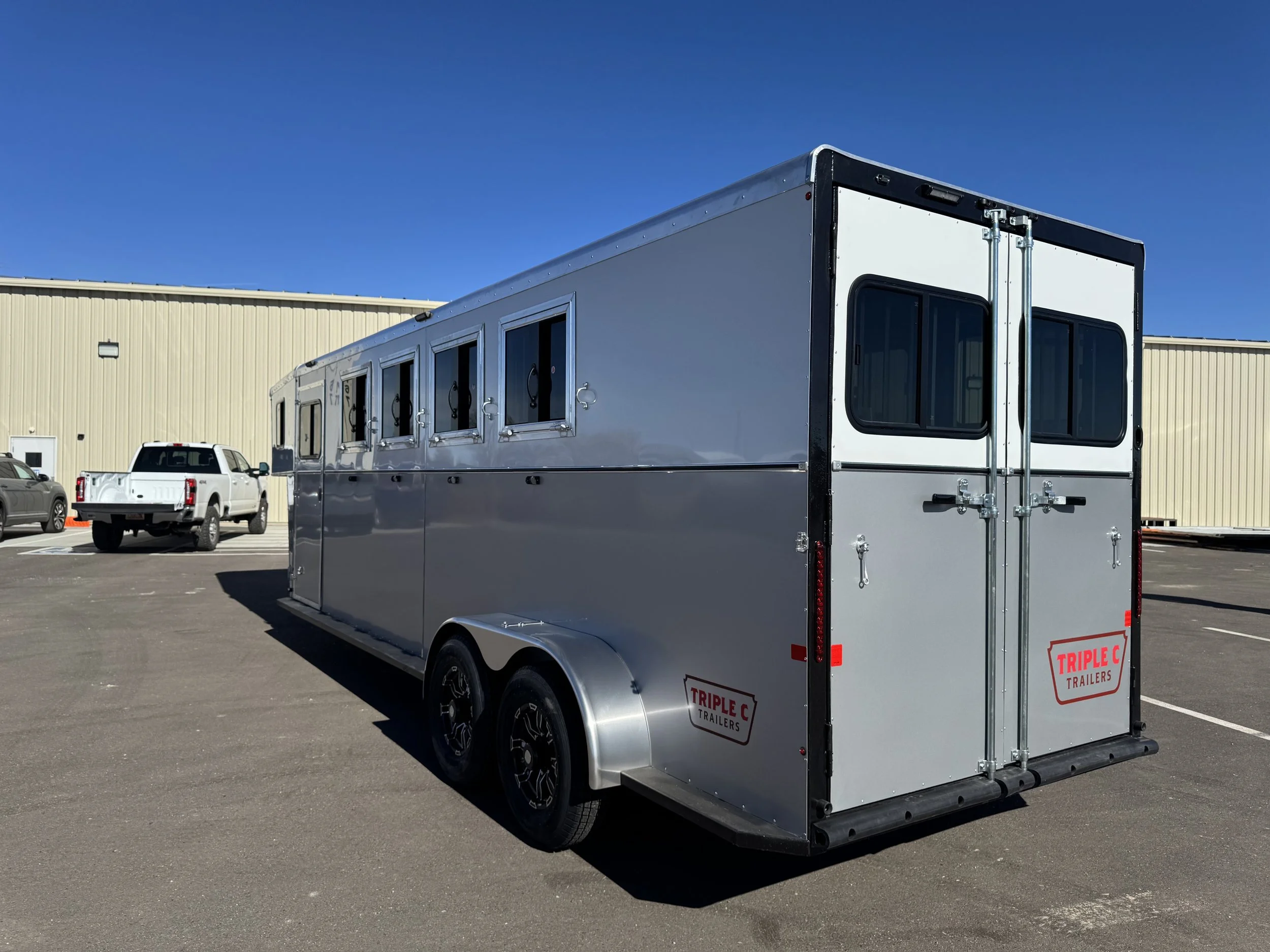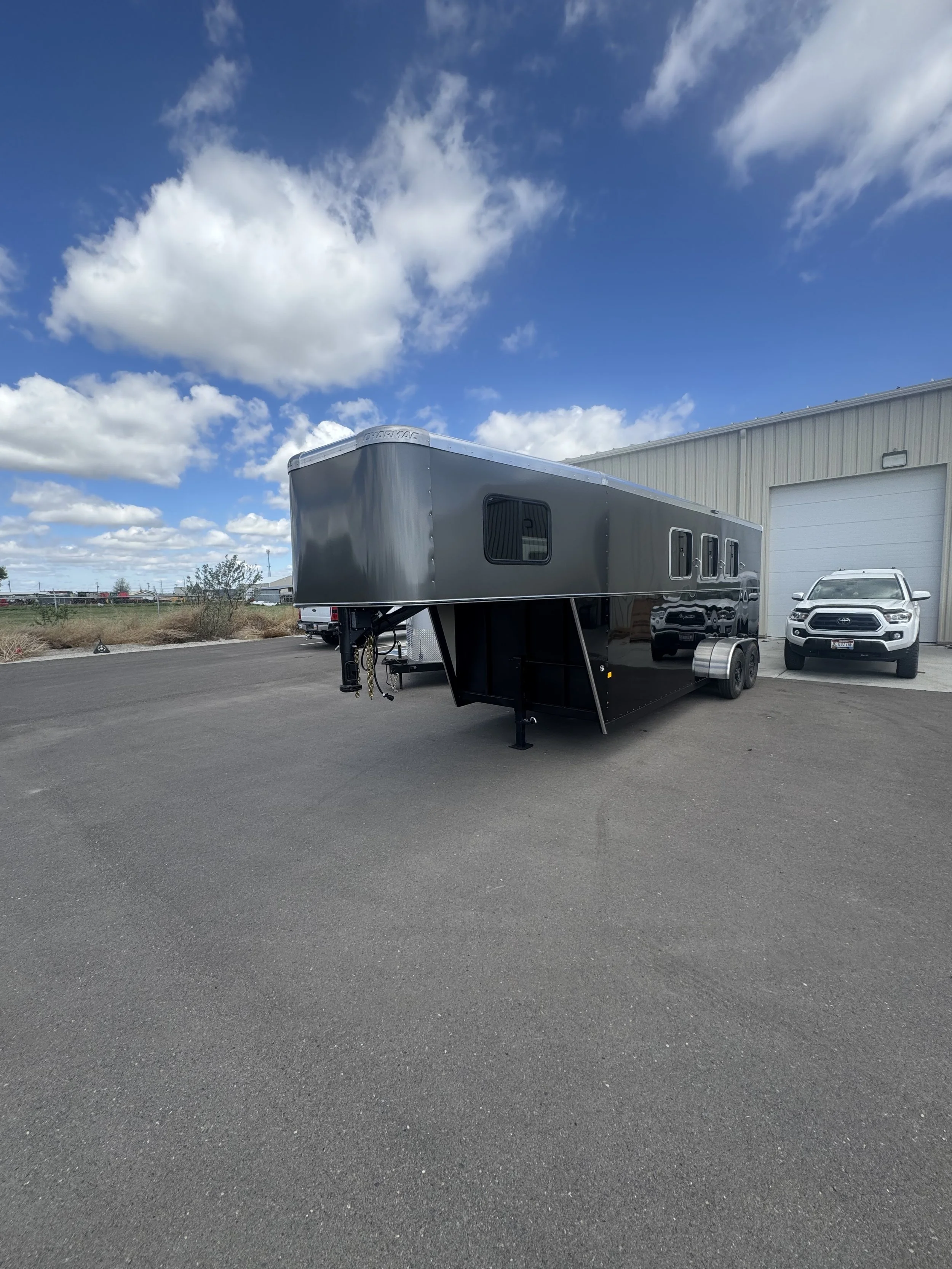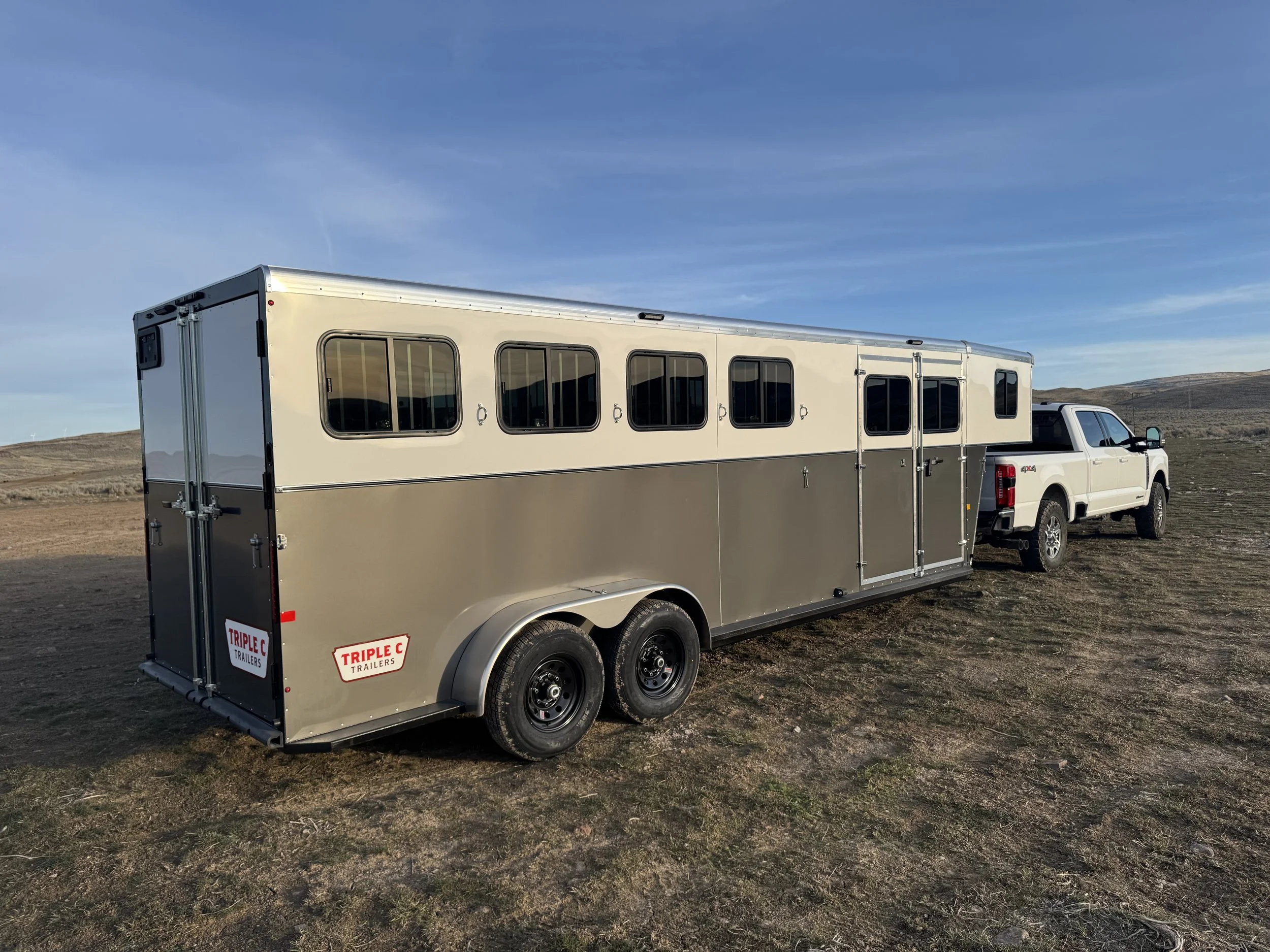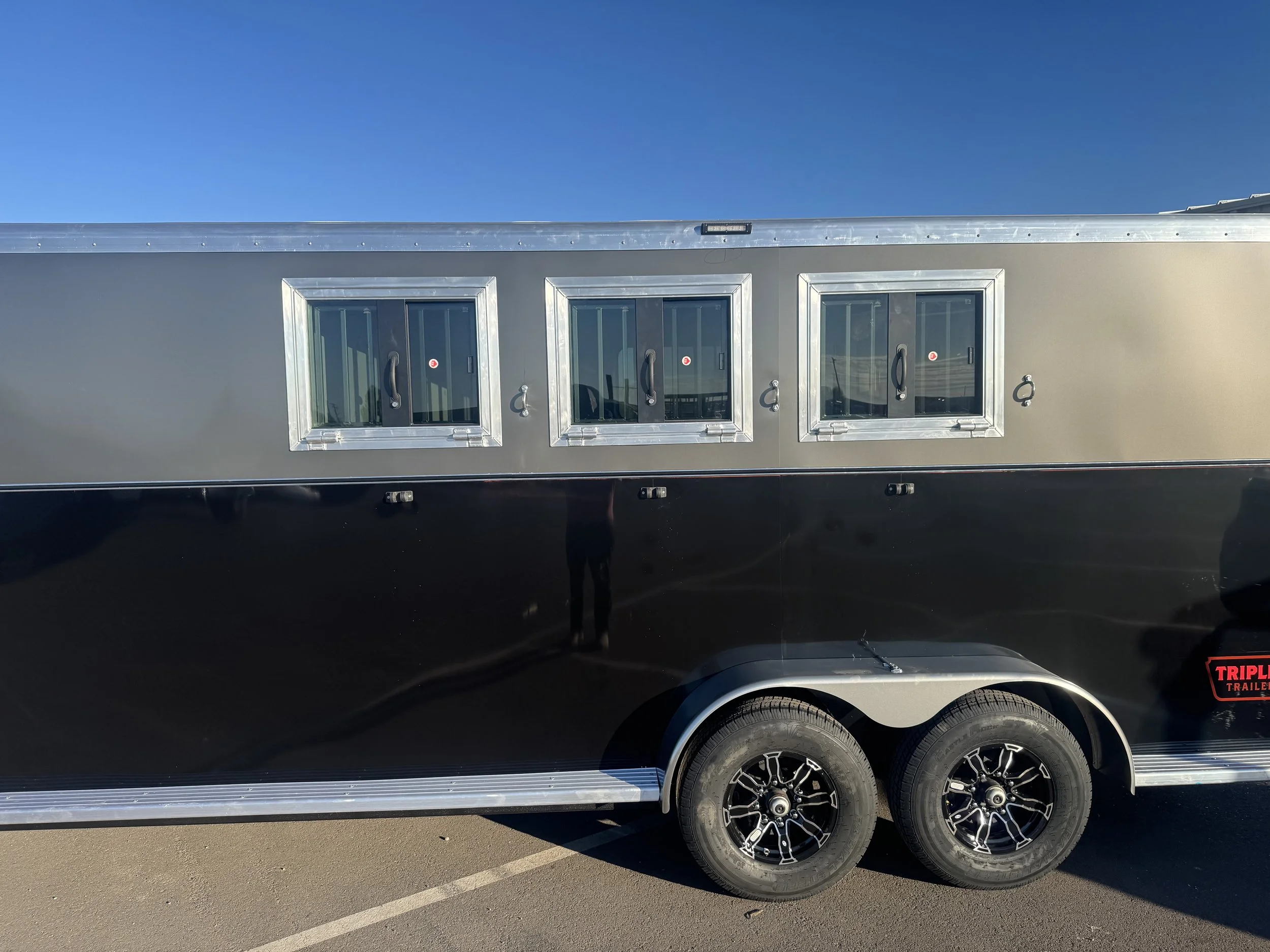 The Teton is taking the work we did with the Sawtooth and taking it up another notch and adding more options. Coming standard with the same standard features as the sawtooth then replacing the air gaps with 30”x24” Drop feed windows on the head side of the horse and 30”x20” slider windows on the butt side along with roof vents for maximum ventilation. Some of the upgrades you can do to make your Teton truly one of a kind are: